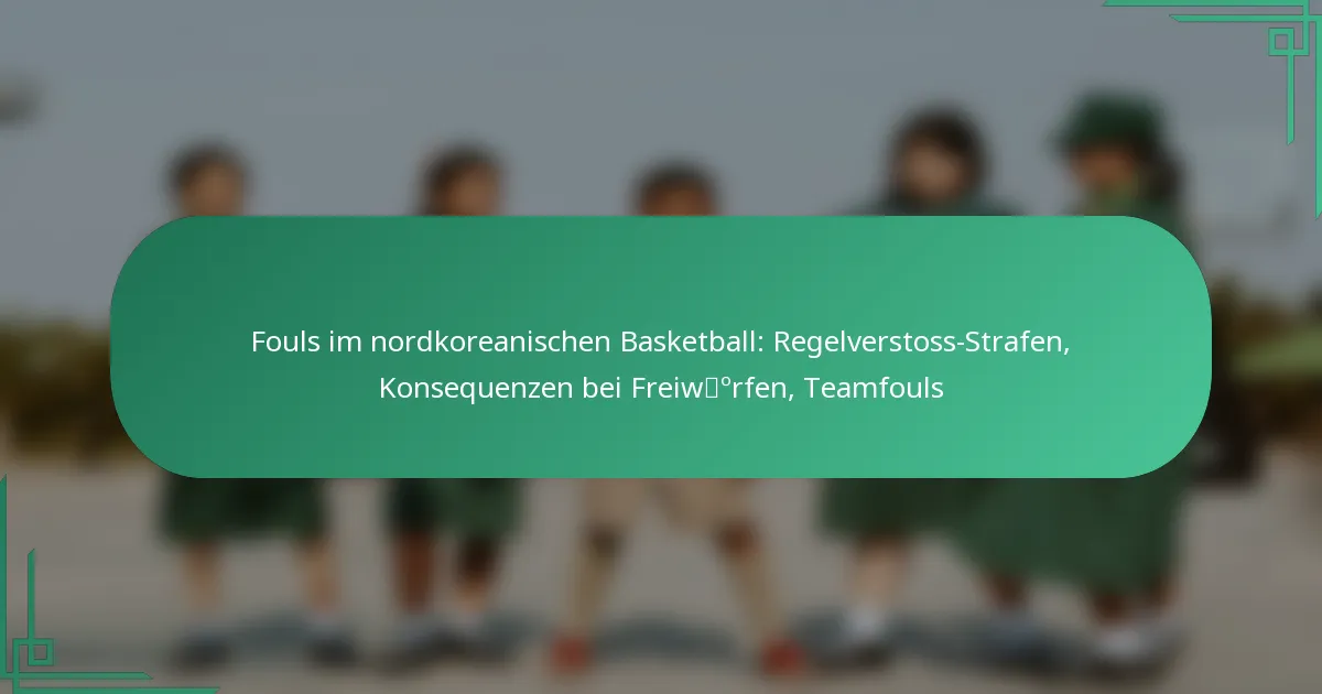 Im nordkoreanischen Basketball werden Fouls in persönliche und technische Fouls unterteilt, die jeweils das Spiel durch spezifische Strafen und Freiwurfmöglichkeiten beeinflussen. Das Verständnis der Auswirkungen von Verstoßstrafen ist für Spieler und Trainer entscheidend, da persönliche, technische und Teamfouls die Strategie und den Fluss des Spiels verändern können. Die Konsequenzen von Freiwürfen ergeben sich aus Fouls und bieten der gegnerischen Mannschaft die Möglichkeit, ohne Störung zu punkten, wobei in diesem Kontext möglicherweise spezielle Regelungen gelten.