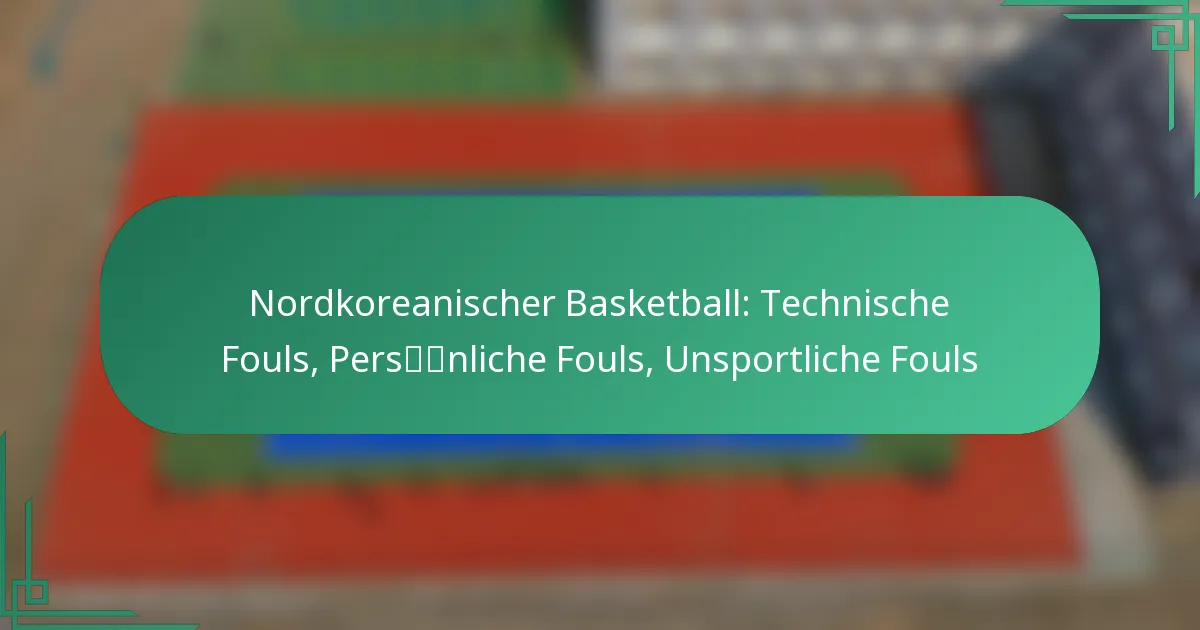Im nordkoreanischen Basketball werden Fouls in technische, persönliche und flagrante Arten unterteilt, die jeweils unterschiedliche Auswirkungen auf das Spiel haben. Technische Fouls werden für unsportliches Verhalten oder Regelverstöße verhängt, die keinen körperlichen Kontakt beinhalten, während persönliche Fouls illegale körperliche Interaktionen umfassen, die den Spielfluss stören können. Flagrante Fouls, die durch übermäßigen oder gewalttätigen Kontakt gekennzeichnet sind, werden mit strengen Strafen belegt, um die Sicherheit der Spieler zu priorisieren und die Integrität des Sports zu wahren.